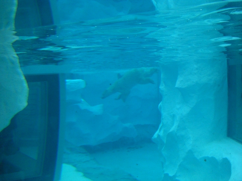 上野動物園に行ったら、シロクマが水中で泳ぎまわるところを見ることができました。