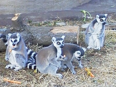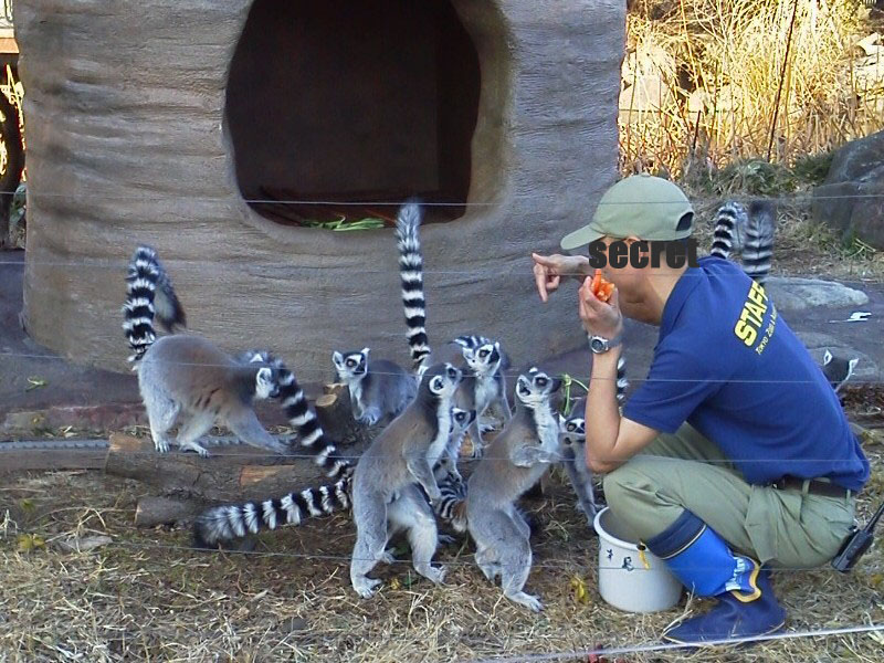 ワオキツネザルのごはんは、スティックにんじんのようです。菜っ葉も置いてありますが、にんじんのほうが好きなようです。