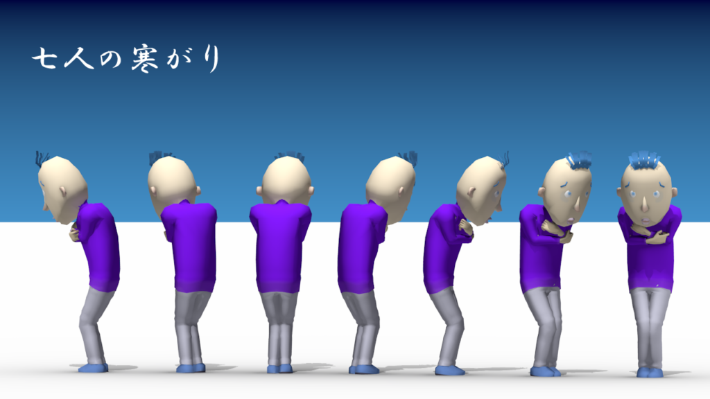 寒いというより、何かを怖がっているオカマさんみたいに見える。