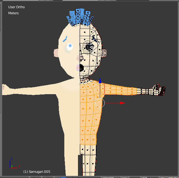 今回は服を別オブジェクトで作りました。