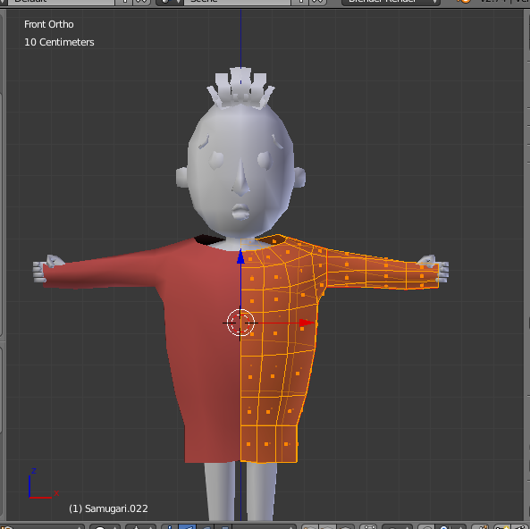 服を作る方法は「体をモデリングしたあとに服になりそうなあたりの面を選択してShift+Dキーで複製、Pキーで別オブジェクトにして、Sキーで拡大して服にする」のだと、思っていたんですが、