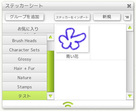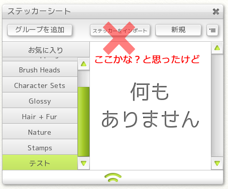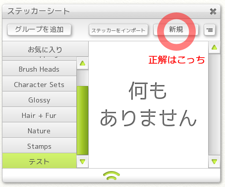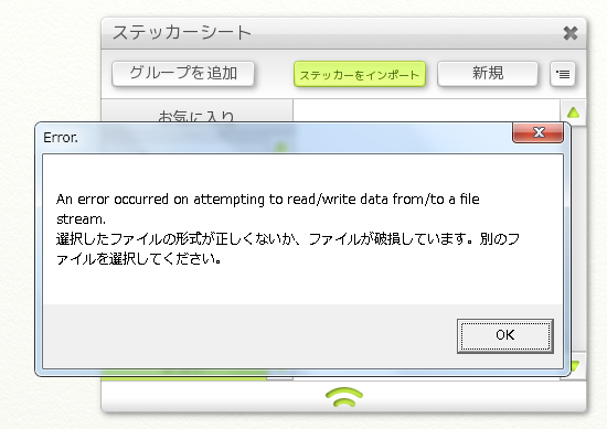 結論からいうと、「ステッカーをインポート」じゃなくて「新規」をクリックすればちゃんと取り込めます。