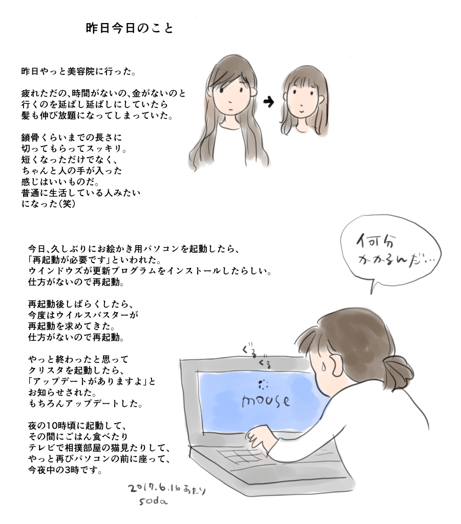 「お絵かき用パソコンを毎日起動する」という目標をたてました。このままでは日々の雑事に追われたまま人生が終わってしまう。強制的にでも何か描き続けないといけない、マジやばい。なんて思ったのでした…